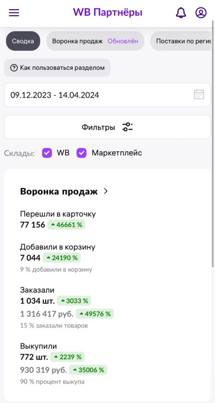 Девушка вышла на хороший оборот уже на 3-й месяц. При условии, что у неё попросту был новый кабинет. А представьте, как быстро ещё большие цифры может начать делать опытный селлер?