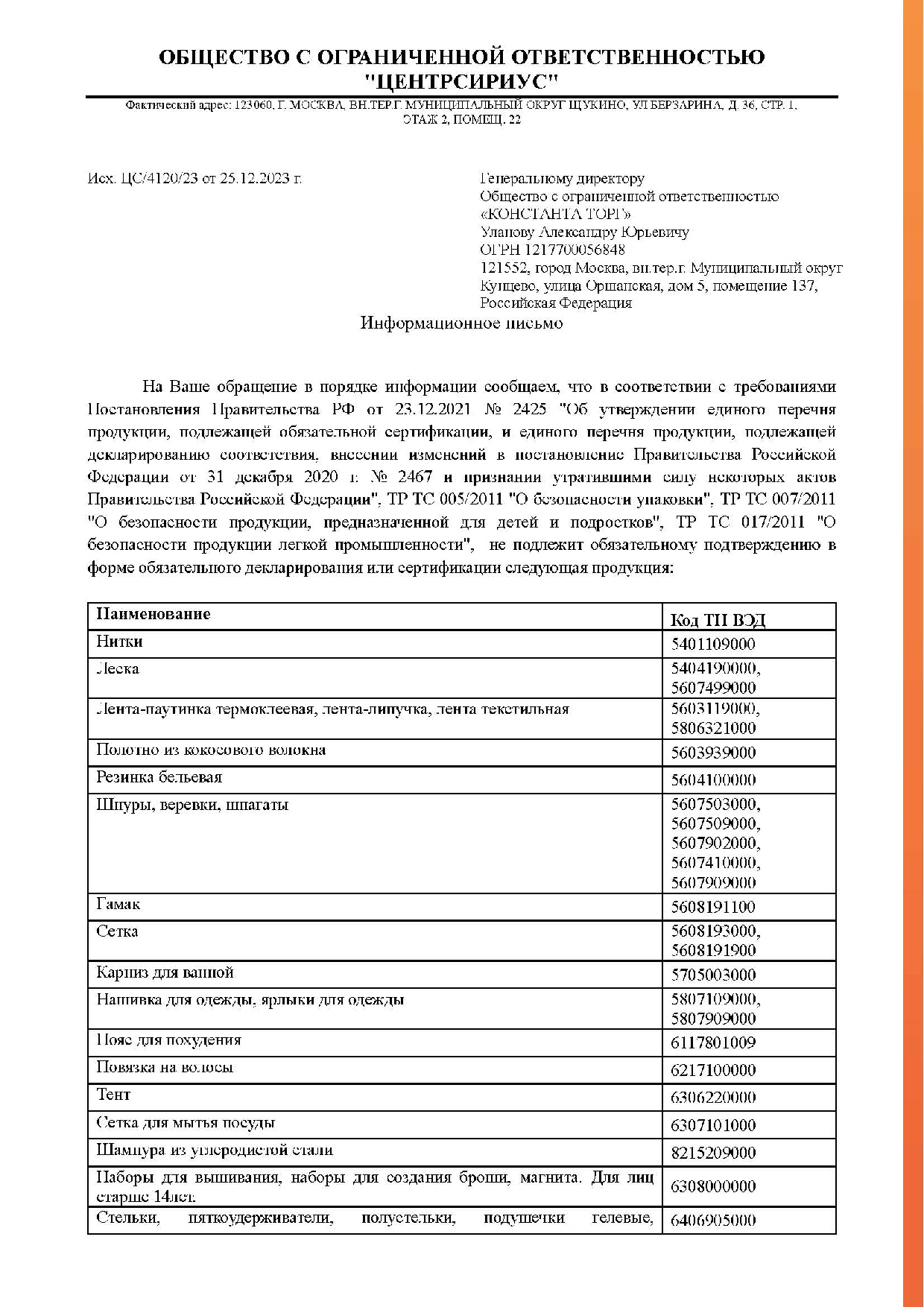 Стоимость упаковки товара составляет 20 руб.