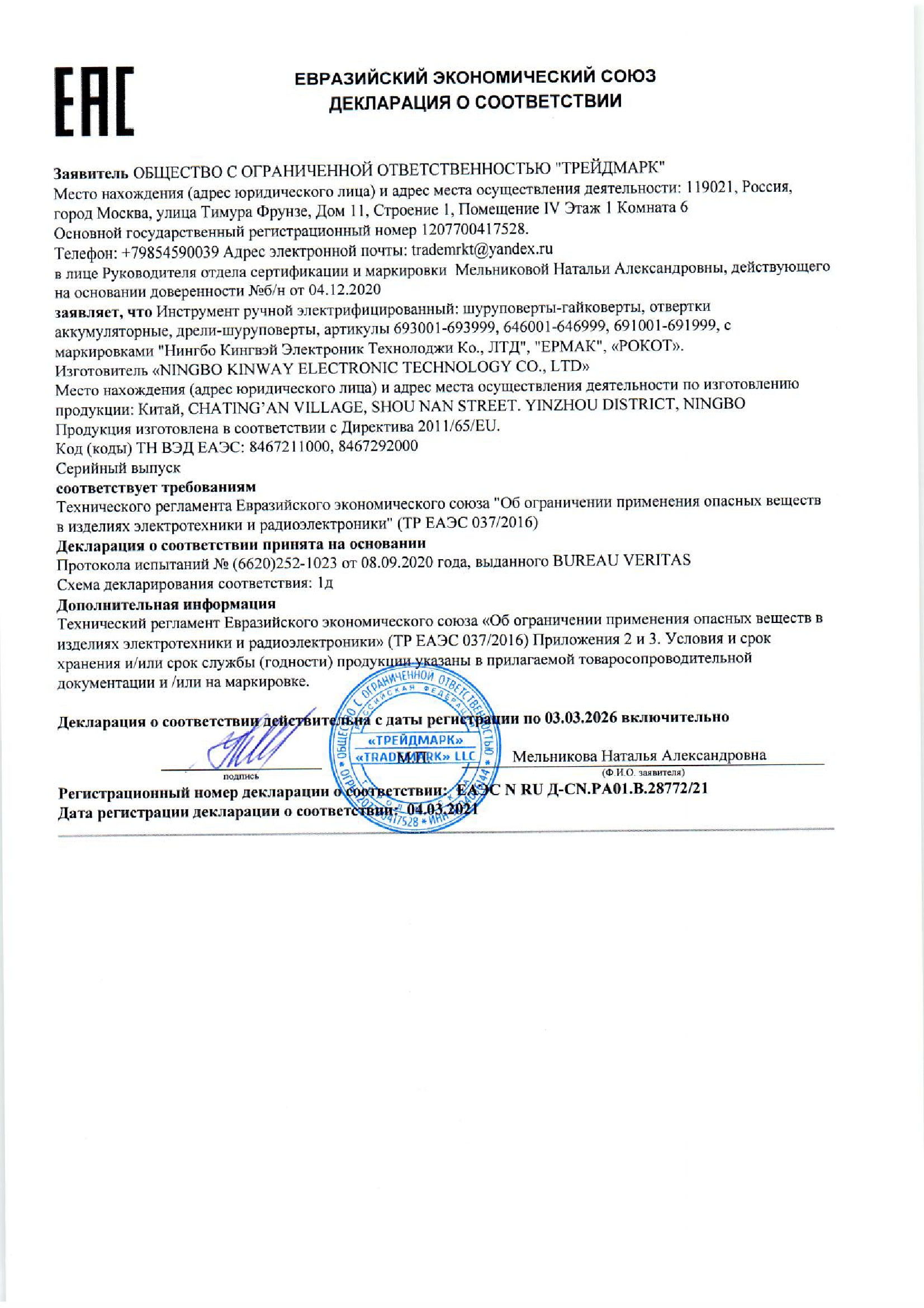 ЕРМАК Отвертка аккум. ОА-48C, 4,8 В, Ni-Cd, 0,6 Ач, 2 Нм,200 об/мин,LED подсветка. пов. рук,блистер