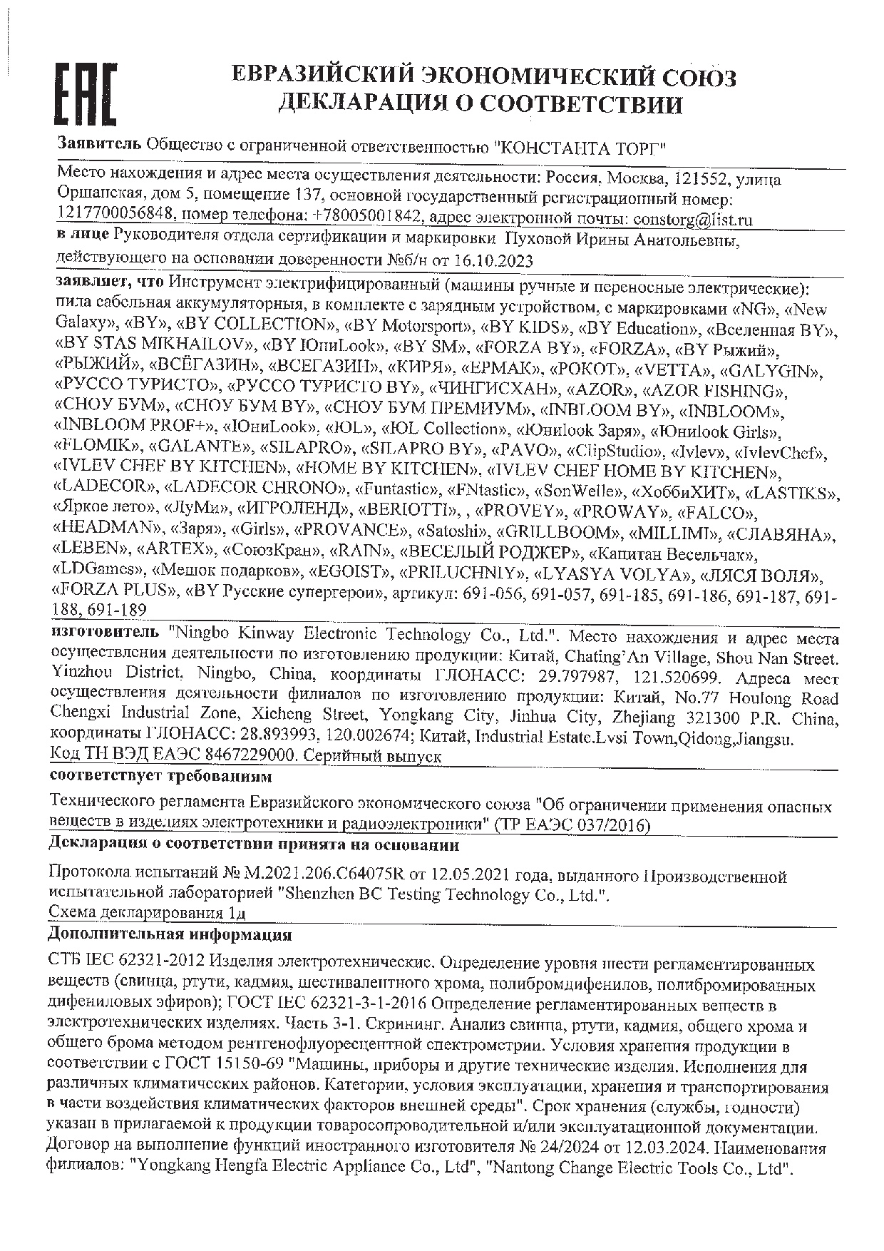 ЕРМАК Пила сабельная аккумуляторная 20В 2А ЭР2 (ONE)