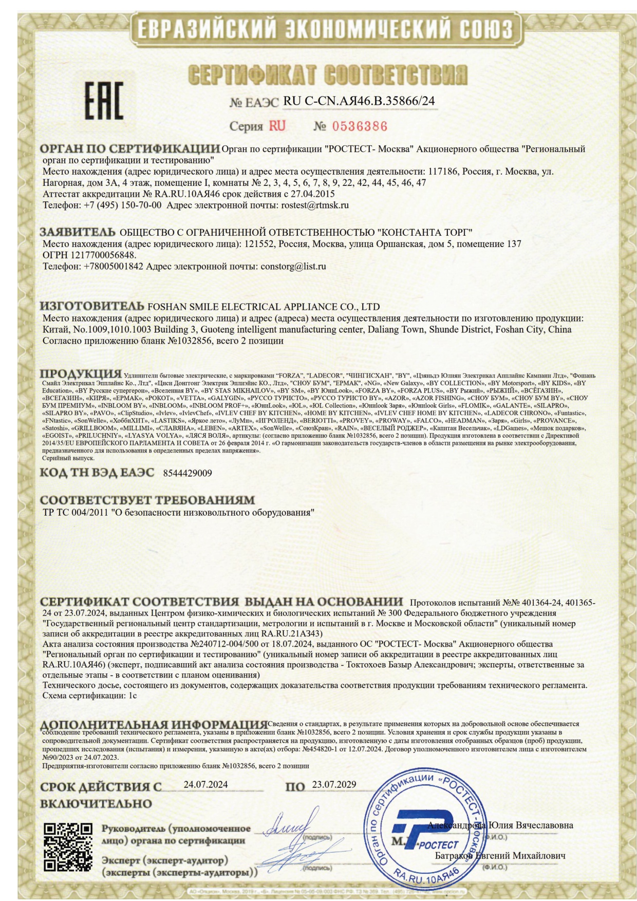 - Тип товара Удлинитель силовой
